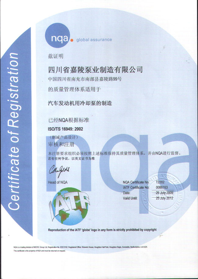 质量管理体系认证证书